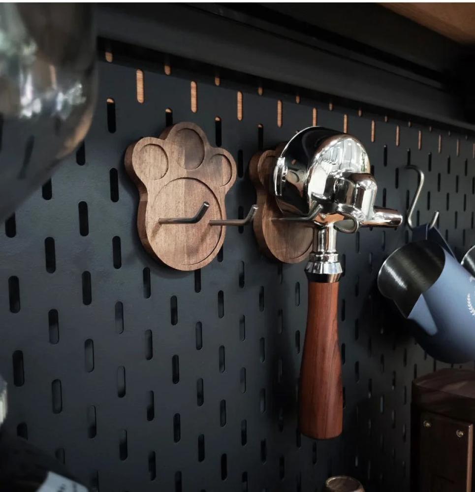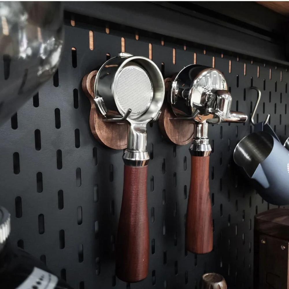 Portafilter رف جداري خشبي بحجم 85x85mm يوفر مكانًا عمليًا ومنظمًا لتعليق أداة البورتافلتر مما يحافظ على ترتيب مساحة العمل ويسهل الوصول للأدوات أثناء تحضير القهوة.