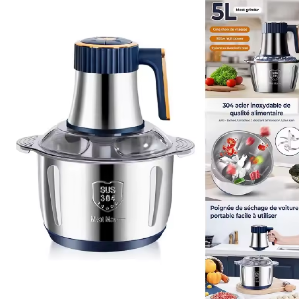 تحضير الطعام أصبح أسهل وأسرع مع مفرمة اللحم الكهربائية بسعة 5 لتر، تصميم متين بمحرك قوي يضمن كفاءة مثالية للفرم والخفق والتقطيع في ثوانٍ.
